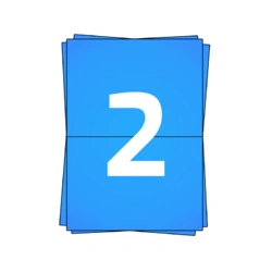 Estas hojas de pegatinas azules A4 tienen 2 etiquetas por hoja. Así que hay 2 pegatinas A5 en 1 hoja. Las etiquetas autoadhesivas A5 tienen un adhesivo permanente y están hechas de papel decolorado sin cloro, por lo que se pueden pegar en diferentes superficies como papel, cartón y lámina. Las hojas de etiquetas A4 son adecuadas para todas las impresoras de chorro de tinta y láser, así como para máquinas offset y copiadoras. Hay 100 hojas en una caja. En este caso, 200 etiquetas A5 azules. Las hojas de pegatinas A4 de 210 mm x 148 mm se utilizan a menudo como etiquetas de almacén y para las cajas. Debido a su tamaño, también se denominan pegatinas A5, etiquetas A5.