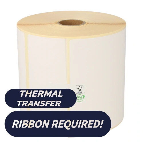 Las etiquetas compatibles Zebra 102mm x 152mm, tienen un núcleo de 25mm. También conocidas como el modelo 3006322. Estas etiquetas están hechas de material térmico blanco y tienen una fuerza adhesiva permanente. Z-Select 2000T Etiqueta de transferencia térmica.