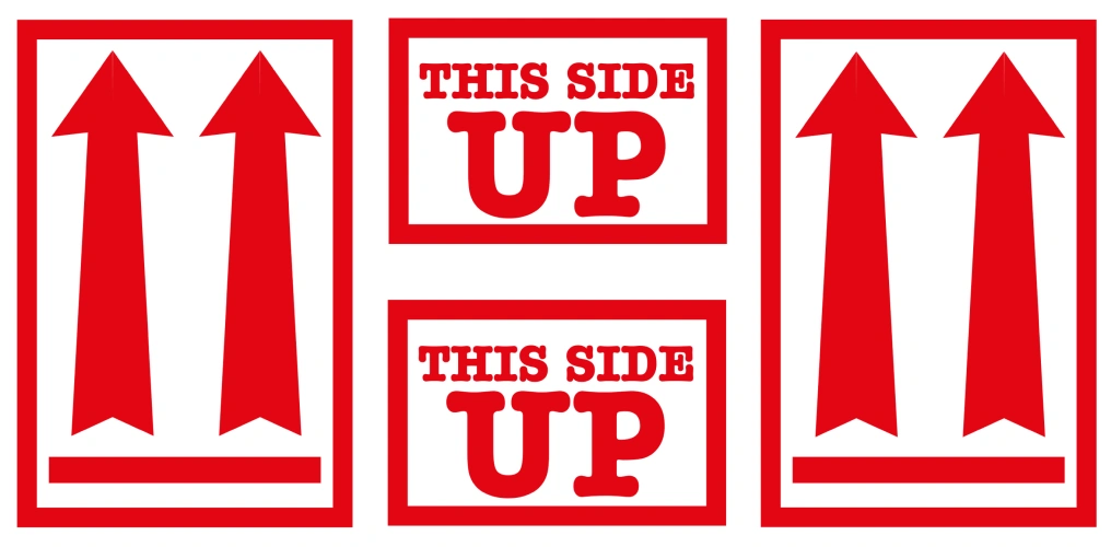 Una de nuestras plantillas de etiquetas de advertencia son etiquetas 'este lado arriba' (este lado hacia arriba). Estas etiquetas están hechas de papel grueso de color blanco brillante y tienen un adhesivo permanente.